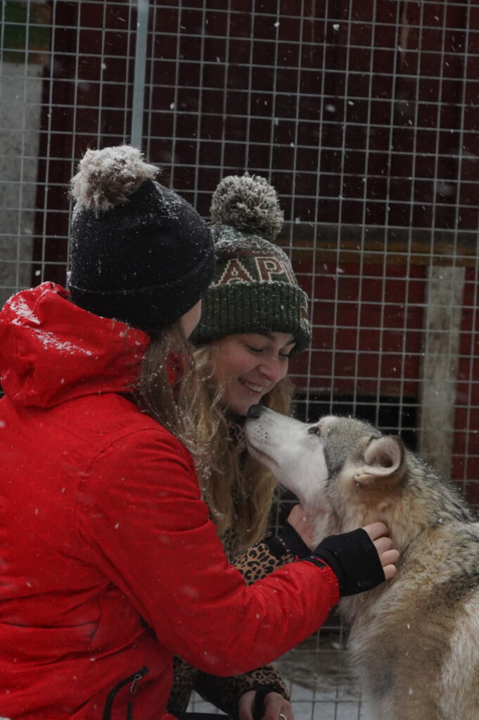 Fantastic – We had a fantastic trip, arriving on snow mobiles to be met by the charming young couple who have made their life in a remote dwelling along with their many wolf dogs. We went into the enclosures and were able to meet these beautiful animals face to face. Well worth a visit.